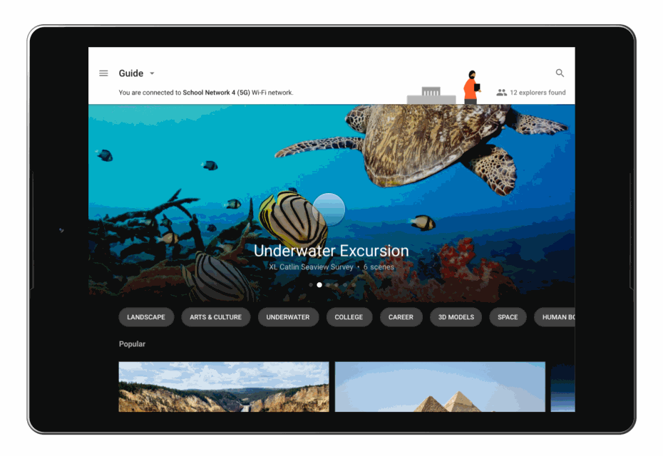 Expeditions users consist of two groups: 1) Guides and 2) Explorers. The experience requires one guide who will be guiding one to many explorers.